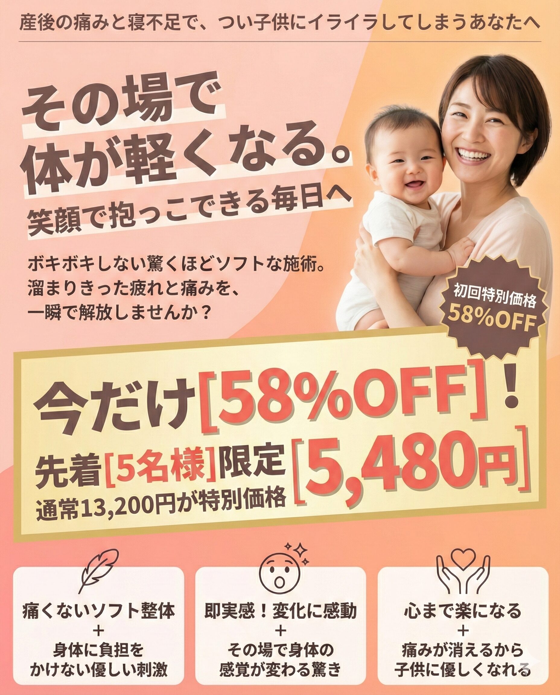 本気で産後の不調から解放され、もっと楽しく育児をしたいママさんだけで結構です。