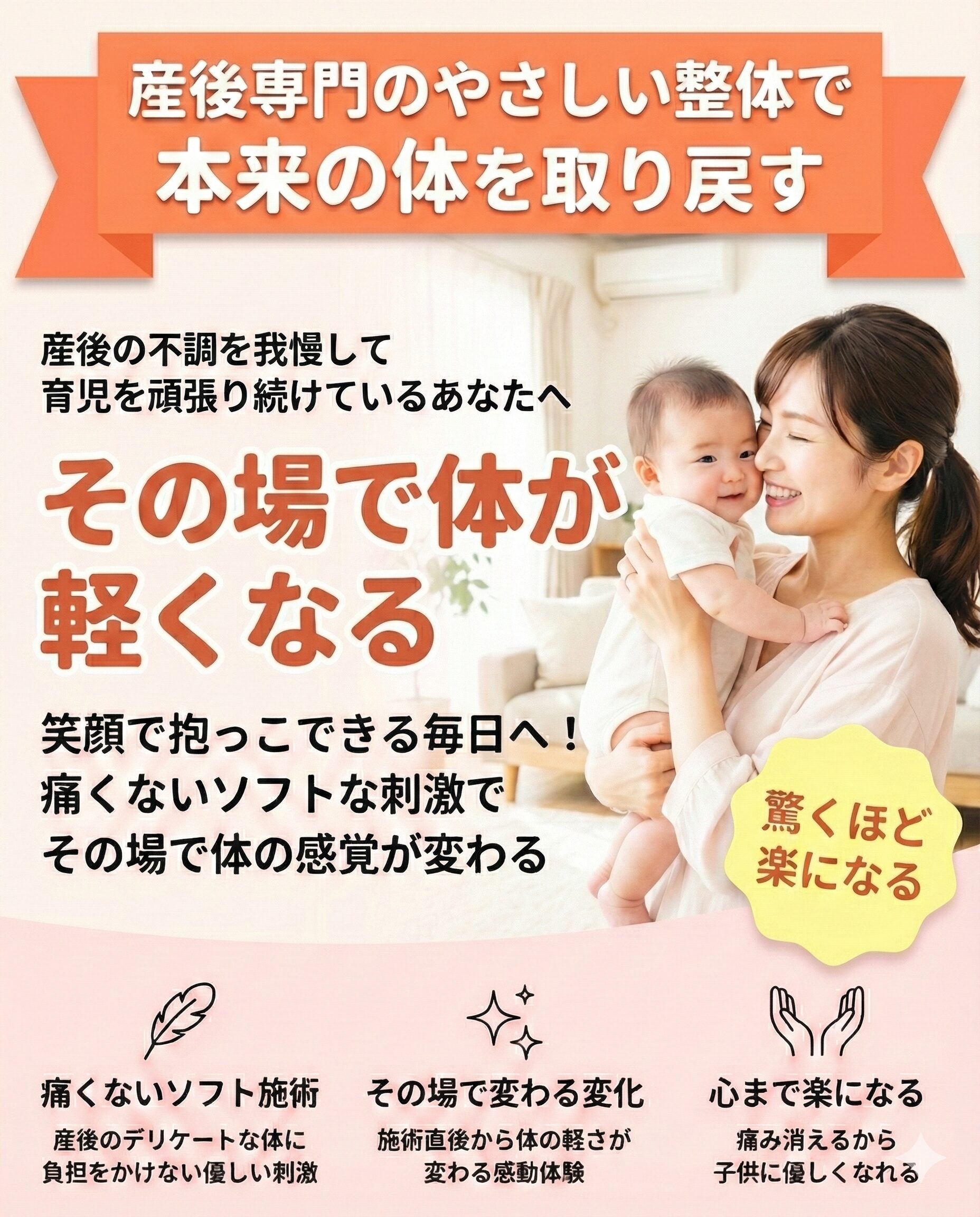 産後に起こる体の変化や育児による負担をそのままにしておくと、不調が長引いたり、慢性化することも少なくありません。